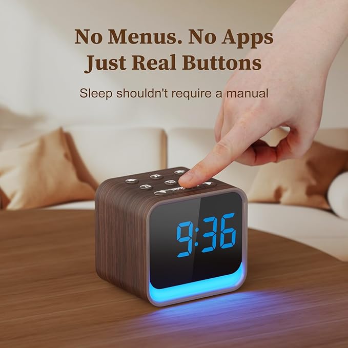 - Wooden Design & Tap to Sleep: Features a wood grain design that seamlessly blends with any decor, and it offers hassle-free use with a simple one-button setup to initiate sleep mode