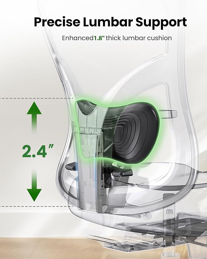 - Adjustable Lumbar Support: This ergonomic office chair is designed to align with the natural curve of your spine. It features a 2.4″ height-adjustable range, offering targeted relief for the lower back. The soft, enhanced lumbar pad helps ease tension and alleviate fatigue.