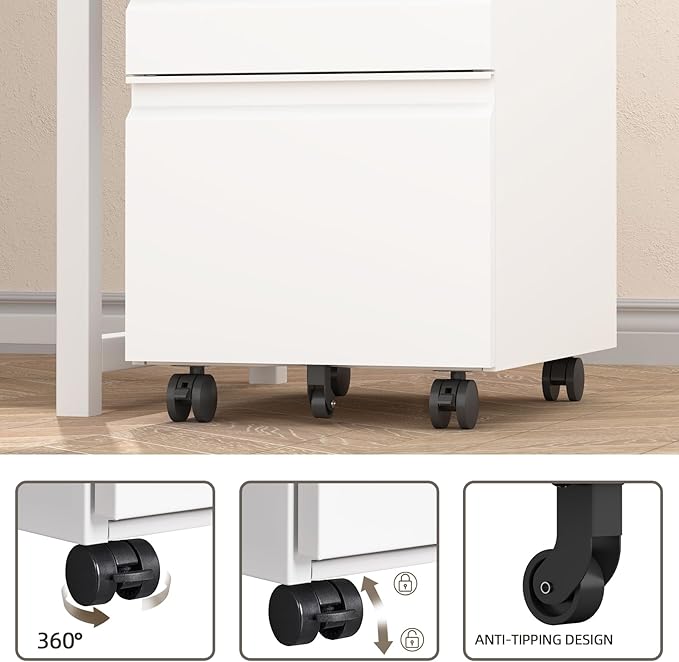 - ✨✨✨【Mobile Filing Cabinet】This mobile file cabinet equipped with five casters, including two front casters with braking function and one center caster to prevent tipping. You can move the cabinet to any place or corner at will.