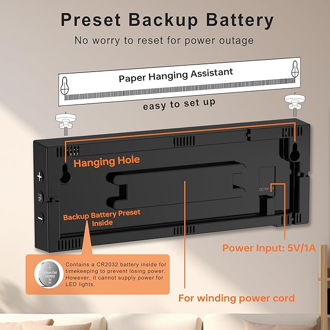 - 【Have to Plug-in】It's NOT battery operated. It must work with 5V power adapter and cable cord (included). There's a memory battery inside so it will remember your setting even it's disconnected.