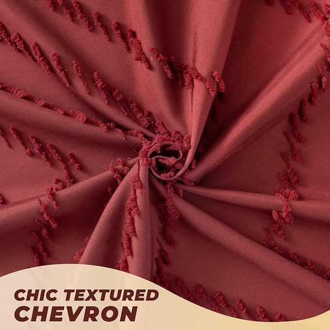 Burgundy Shower Curtain Boho Farmhouse Shower Curtain 72 x 72 Tufted Chevron Textured Minimalist Shower Curtains for Bathroom