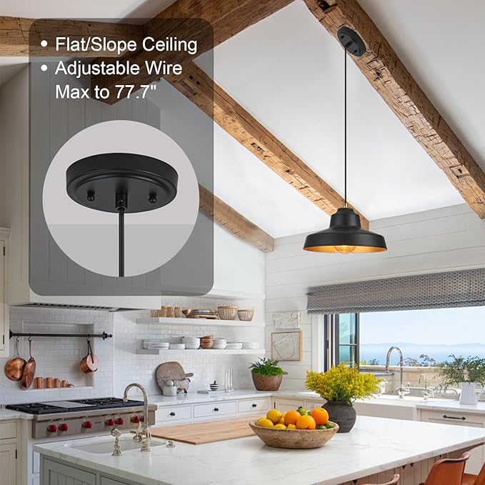 - [Easy Installation]: Black pendant light fixtures Include all mounting hardwares for quick and easy installation.can be applied to the sloped ceiling for your space needs.