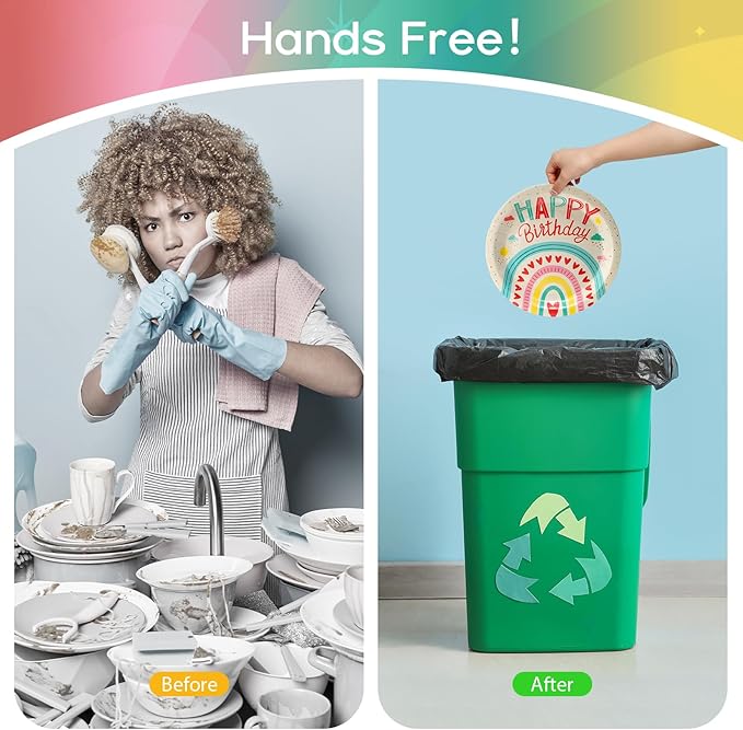 - 🌈【Extensive Set Combination】- Our birthday party disposable tableware comes with, 25 7-inch plates, 25 9-inch plates, 25 9-compass cups, and 25 13-inch paper napkins. It can satisfy the dining needs of 25 guests.