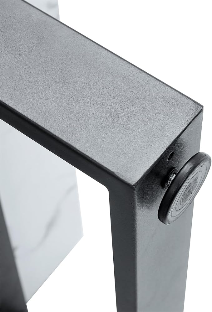 - [Product Features] This coffee table for living room is designed with a simple black and white color scheme, featuring a white marble tabletop and black metal legs, showcasing a modern and minimalist style. The desktop thickness is 8.2 inches, with a smooth surface that is easy to clean and maintain. The overall structural design of the coffee table has strong load-bearing capacity, and the bottom anti slip pad ensures stability.
