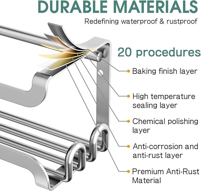 - Sturdy Spice Rack with 16 Hooks - The premium metal cabinet door spice rack is meticulously crafted with powder-coating for enhanced durability and rust resistance. The pantry door spice rack organizer comes with 2 hooks on both sides(4 pack total 16 hooks), so you can easily hang bottle openers, scissors and some other light items.Purpose-built to ensure practicality, versatility, and strength, our wall mount spice rack for cabinet door can be safely used in domestic and commercial spaces