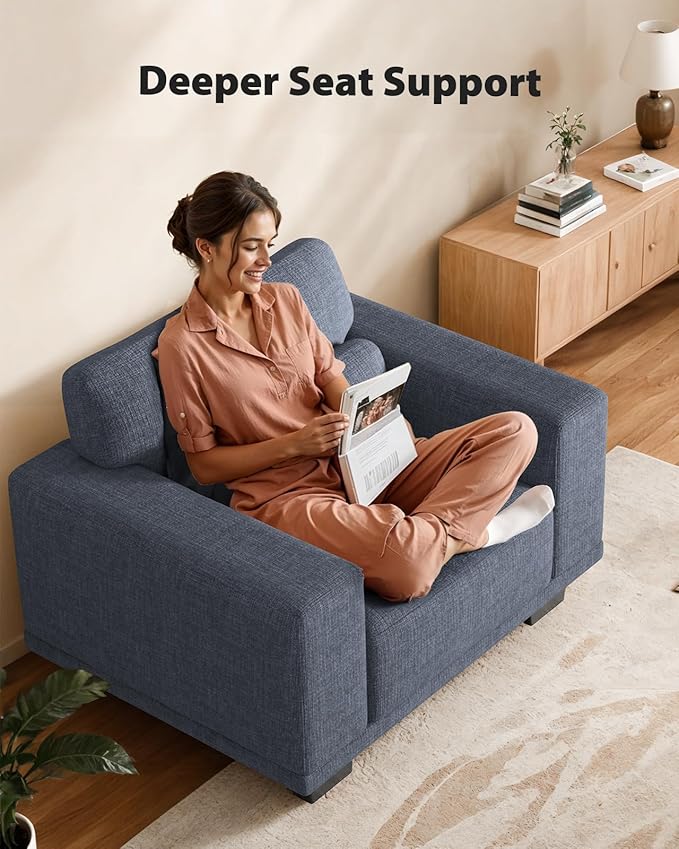 Pipishell Modern Accent Chair, Oversized Armchair with Thick Cushion & Wide Seat Armrests, Reading Chairs Comfy Arm Chair, Removable Sofa Cushion and Cover,Easy to Install, Blue