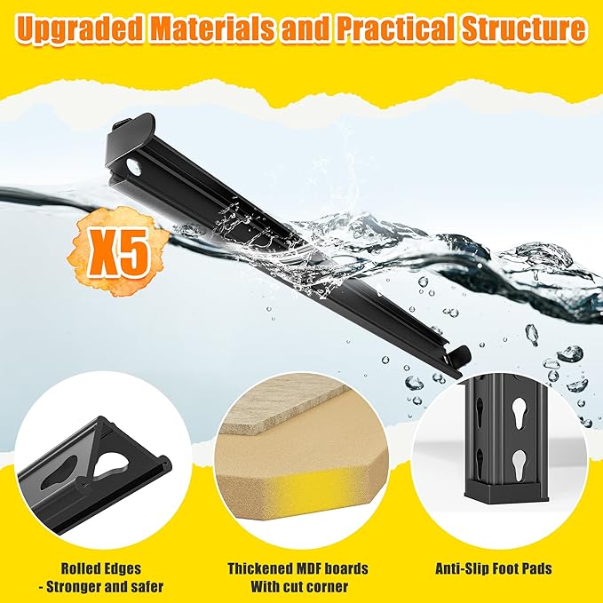 - 【Adjustable 5-Tier Shelving Unit】Customize shelf heights to fit items of all sizes—from paint cans to bulk supplies. Adapts seamlessly to closets, pantries, or garages