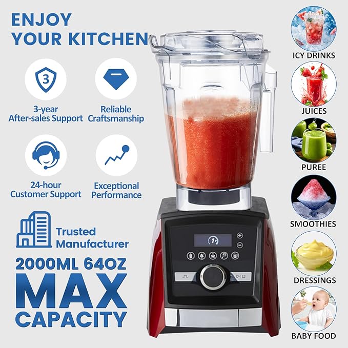 - FULL AFTER-SALES SERVICE: We offer a 3-year support with hassle-free returns, emphasizing our commitment to quality and your satisfaction. If the 64oz low-profile container has any quality issues, please contact us immediately, and we will resolve it promptly. Our 64 oz low-profile pitcher, compatible with vitamix ascent blender, is perfect for home chefs and professionals alike. It efficiently blends large batches for smoothies, soups, sauces, and more, making it ideal for family meals or catering events