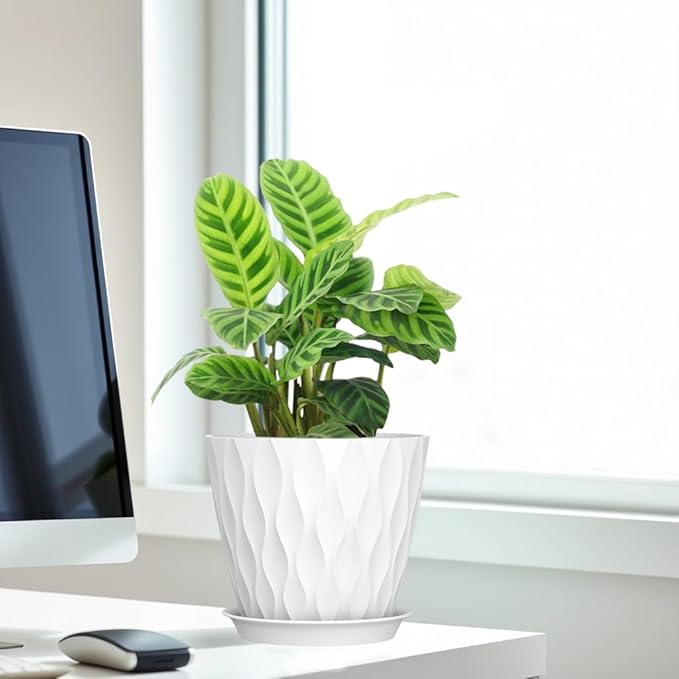 - 【ESSENTIAL DRAINAGE SYSTEM】: Each pot features multiple drainage holes at the bottom and includes a matching saucer. This smart design prevents overwatering, protects your surfaces from leaks and stains, and promotes healthier root growth for your plants.