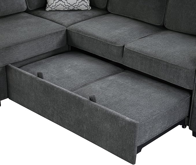- 【Convertible Sleeper Sofa】This versatile L-shaped sectional is designed with functionality in mind. It features not one, but two pull-out sleeper sections—one large and one small—providing ample sleeping space for guests or family members. The dual-extension system effortlessly transforms the sofa into a spacious bed, making it perfect for overnight stays or lounging in comfort.