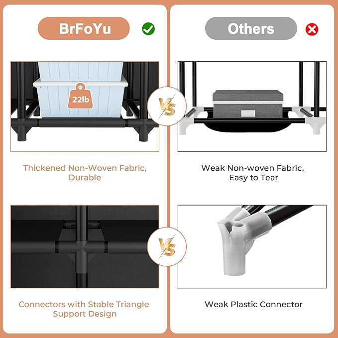 - Sturdy Portable Wardrobe Closet: This portable closet wardrobe is made from sturdy metal tubes, reinforced plastic connectors, and high-quality non-woven fabric, ensuring long-lasting durability. This bedroom closet providing stable support for your clothing