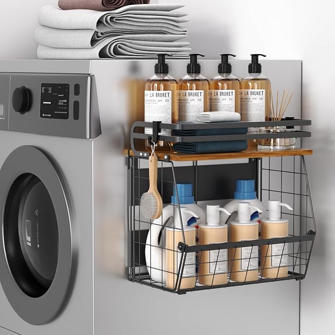 - 【2-in-1 Magnetic Organizer】The magnetic fridge shelf use as a spice rack for your kitchen or a fruit basket for fresh produce-no extra containers needed! Keeps counters clutter-free with essentials always within reach. The sleek, modern design blends seamlessly in any room: kitchen, bathroom, or bedroom. It comes with 2 movable hooks for organized storage.
