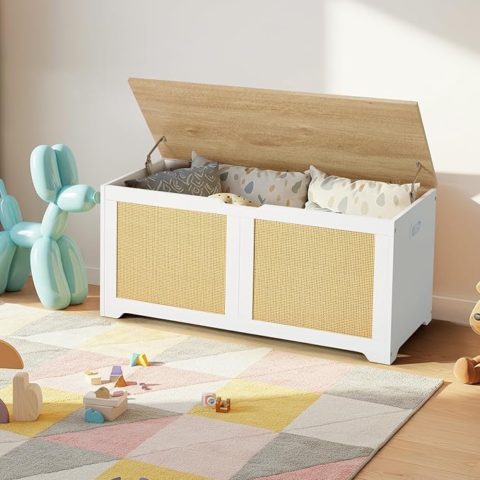 EROMMY Storage Chest, 39.4" Rattan Storage Bench with 2 Safety Hinges, Shoe Bench for Entryway, Bedroom, Living Room, Supports 300 lb
