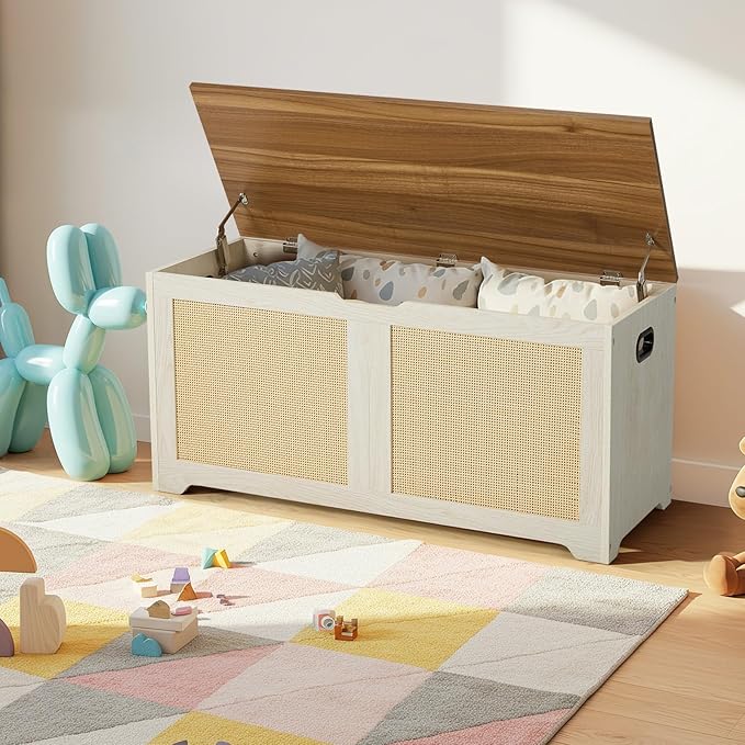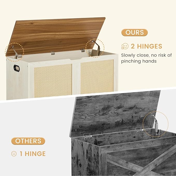 EROMMY Storage Chest, 39.4" Rattan Storage Bench with 2 Safety Hinges, Shoe Bench for Entryway, Bedroom, Living Room, Supports 300 lb