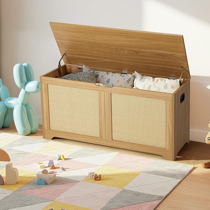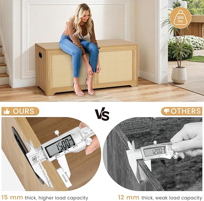 EROMMY Storage Chest, 39.4" Rattan Storage Bench with 2 Safety Hinges, Shoe Bench for Entryway, Bedroom, Living Room, Supports 300 lb