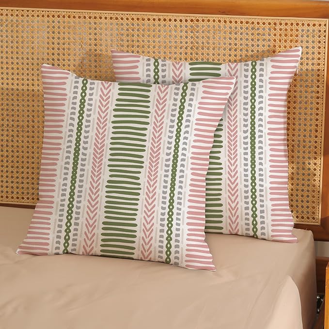 Boho Pillow Covers 18x18 Set of Pink Sage Green Stripes Throw Pillow Covers Outdoor Decoration,Bohemian Abstract Modern Decor Pillowcase Farmhouse Linen Decorative Cushion Cover for Home Couch