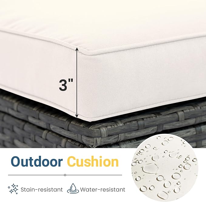 - Upgraded Cushions: Filled with high-density foam, the cushions offer exceptional elasticity, ensuring they retain their shape even after prolonged use. Crafted from breathable, waterproof fabric, they are built to withstand the elements and provide long-lasting comfort for outdoor use.