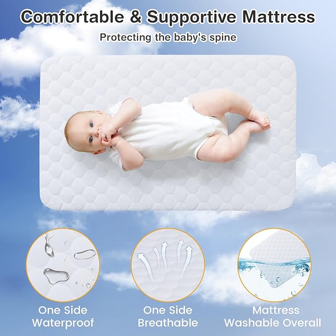 - Comfortable Sleeping Space: The INFANS baby bed comes with a soft mattress to ensure the baby sleeps more comfortably. The unique thickened design provides better protection for the baby's spine. The fully breathable mesh design allows parents to observe the baby more conveniently (Mattress size: 33" long x 16.5" wide)
