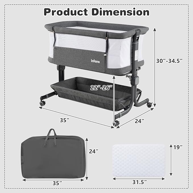 - 3 in 1 Convertible Baby Bassinet: The INFANS baby bassinet can be used as a standalone baby crib, bedside sleeper attached to the adult bed. Parents can change the modes freely to meet different needs
