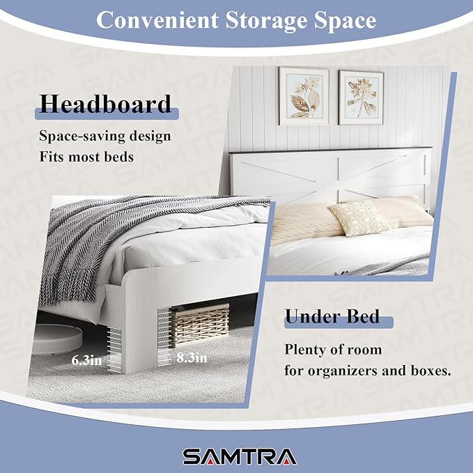- Sturdy Structure: The wood bed frame adopts a reinforced high-quality steel frame and an extra-wide sturdy wood slat support system to ensure safety and durability, providing a strong and reliable support structure, with a capacity of up to 800 pounds