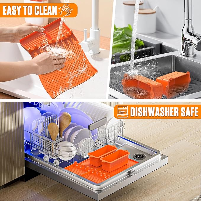 - ✅【Smart Anti-Slip Storage & Oil Control】: The grooved mat securely holds spatulas and seasoning bottles, while the cup liners collect grease precisely to avoid splatter. Keeps your workspace tidy and lets you focus on cooking.