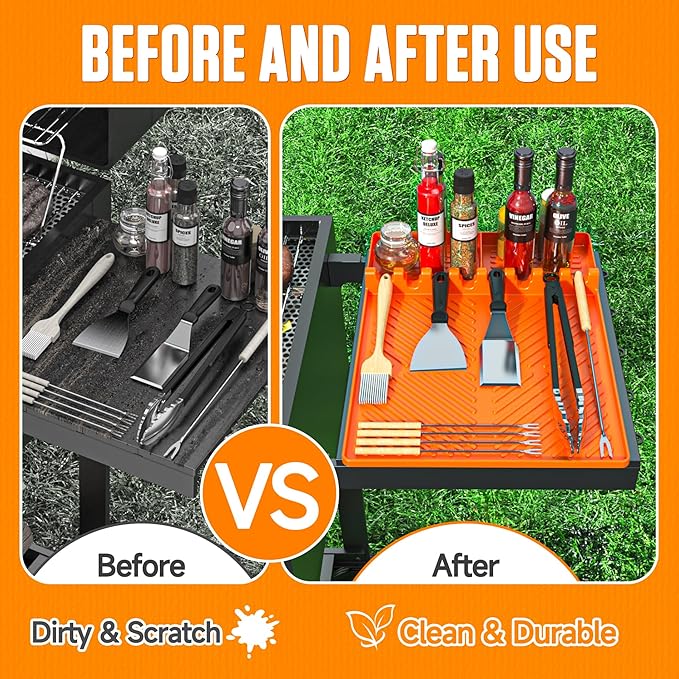 - ✅【All-in-One Griddle Accessory Set】: The Blackstone griddle accessory set includes a silicone spatula mat and 2 silicone grease cup liners, perfectly compatible with 17"–36" Blackstone griddles. Keeps your tools and oil organized, prevents leaks, and keeps your grill spotless.