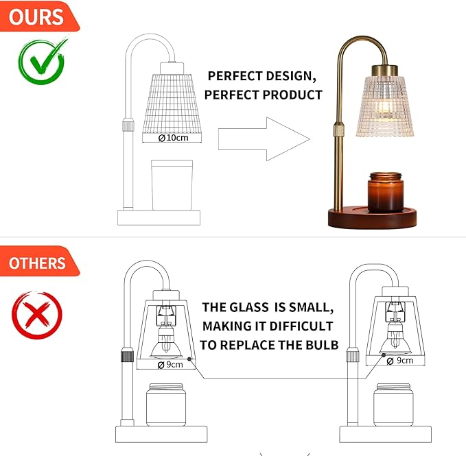 - Brand Quality and FITS ALL CANDLE SIZES: The fragrance electric wax melt warmer is compatible with multiple candles of different heights.The height from the base to the lampshade is adjustable, range from 4 inches to 5.7 inches, It can hold jar candles up to 6 inches in height. MEIXISUE brand produces high-quality materials and high-quality wooden base, anti slip pads under the base to ensure its stability.