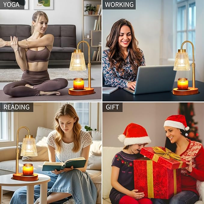 - Great Gift & Perfect Home Decor :The Candle Warmer Lamp comes in an exquisite gift box,The wax melter will be the best presents for Mother's Day,Christmas,Thanksgiving,Valentine's Day,New Year,birthdays,Housewarming or other special occasions.Candle warmer lamp perfect for bedrooms,living rooms,studies,offices,yoga rooms,reading nooks,and cafes,it can also be used as a bedside lamp to create a sleep-inducing atmosphere.