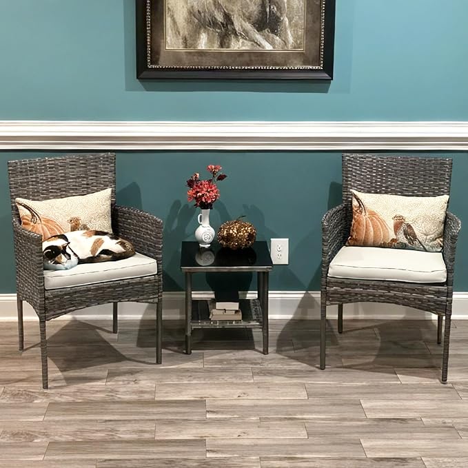 - COMFORTABLE & STYLISH DESIGN: This patio set has thick, high-density rebound sponge cushions for cozy seating. Its simple, stylish look suits patios, balconies, poolside, or gardens.