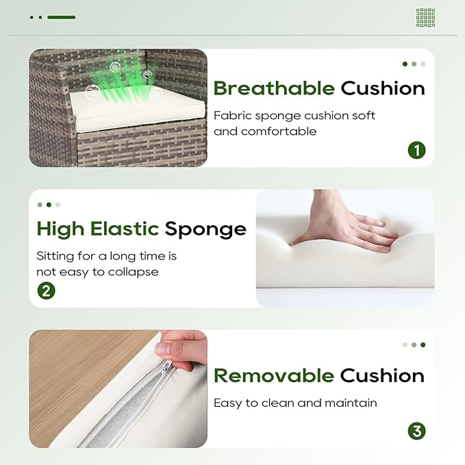 - SPACE-SAVING & VERSATILE: This patio conversation set fits small patios, balconies, and gardens. Compact and practical, this design saves space while providing easy storage for outdoor essentials.
