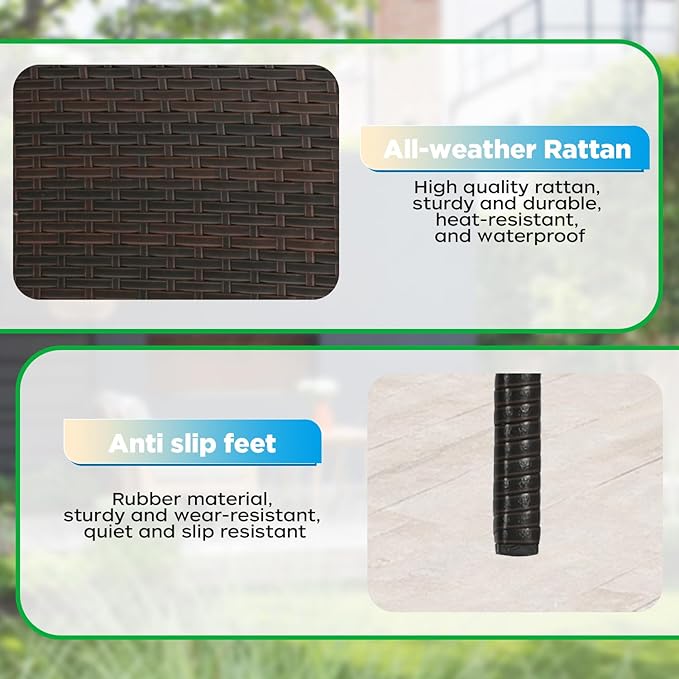 - DURABLE & WEATHER-RESISTANT: This 4-piece patio set features a rust-resistant steel frame and all-weather PE rattan for long-lasting durability. Includes a stylish, easy-to-clean glass-top table.