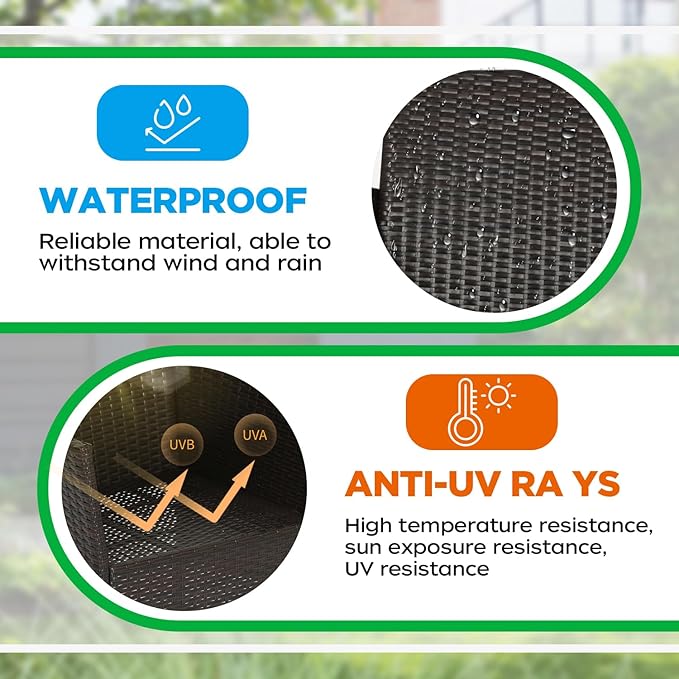 - SPACE-SAVING & VERSATILE: This patio conversation set fits small patios, balconies, and gardens. Compact and practical, this design saves space while providing easy storage for outdoor essentials.