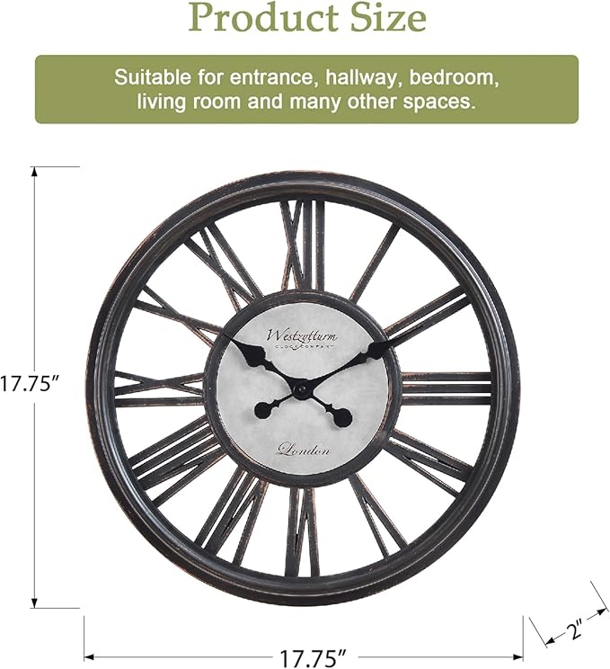 - Vintage Retro Design: This 17.75 inch round wall clock exudes timeless charm with its vintage vintage retro design, seamlessly blending into any decor style, from classic to modern