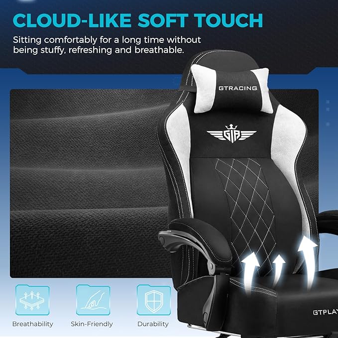 GTPLAYER Big and Tall Gaming Chair Breathable Fabric Computer Chair with Strong Lumbar Support, Comfortable Office Chairs with Pocket Spring Cushion, High Back Ergonomic Desk Chairs with Footrest