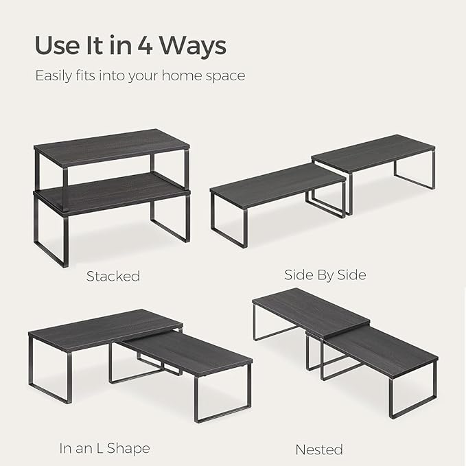 - VERSATILE STORAGE: Set of 2 stackable and expandable shelves perfect for organizing kitchen cabinets, countertops, and pantry spaces