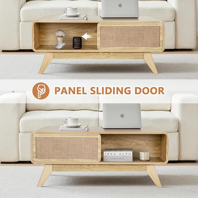 - Multipurpose Table: Our modern coffee table is not just for serving drinks and snacks. It can also be used as a dining table centerpiece or even as a storage solution. The sliding woven door panel provides easy access to the hidden storage compartment, allowing you to keep your living space organized and clutter-free.