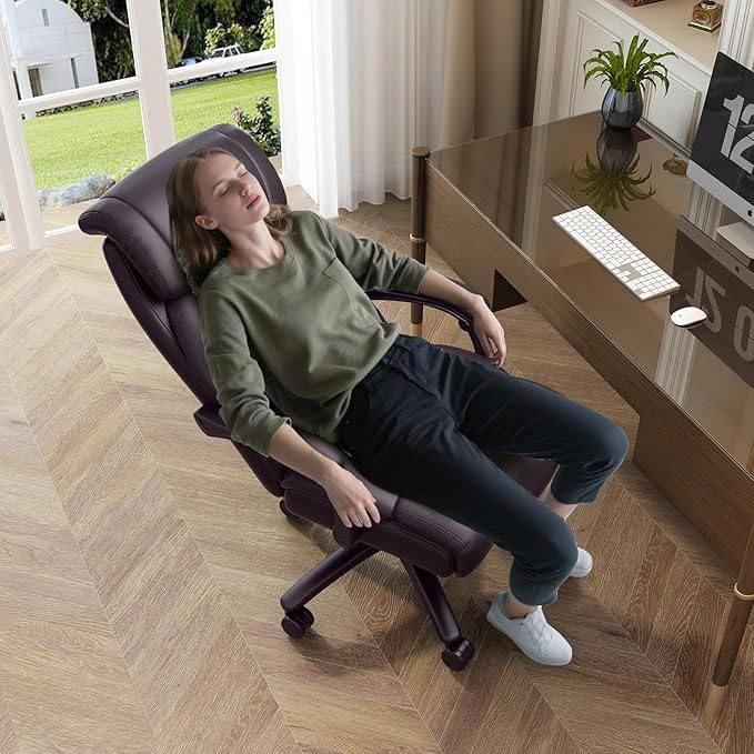 Reclining Office Chair,Recling 90-155°,Ergonomic Office Chair with Lumbar Suppot,Big and Tall Leather Desk Chair,High Back Executive Chair(Brown)