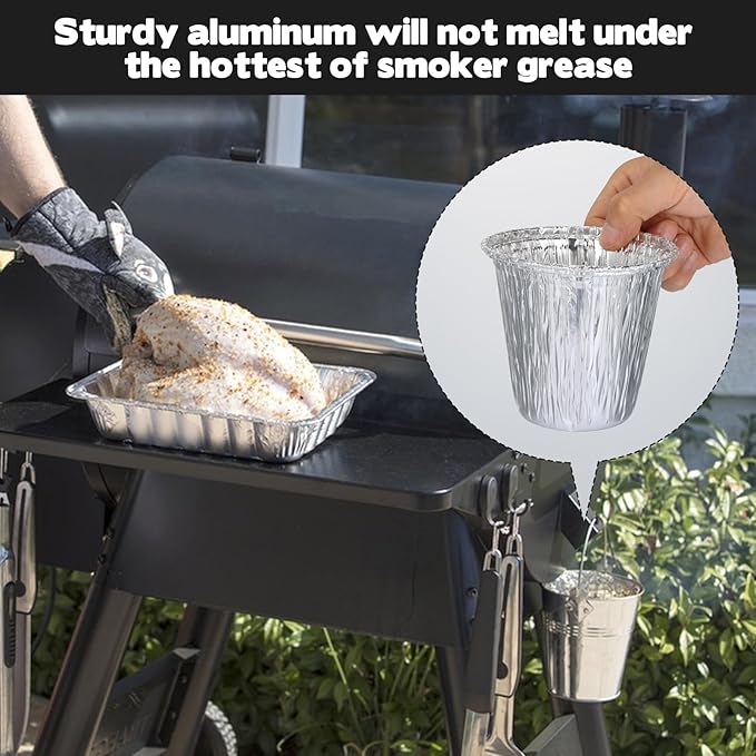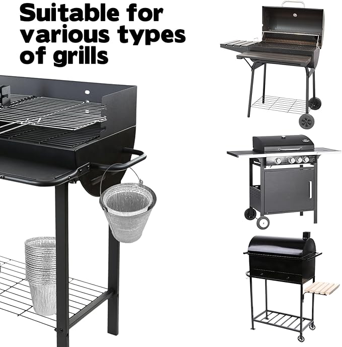 - Durable Material: Made from thick aluminum foil, these aluminum foil drip bucket liners are leak-proof, heat-resistant, and sturdy enough to hold hot grease safely. The reinforced curled edge design keeps the grill drip pan stable inside the bucket, preventing breakage or collapse