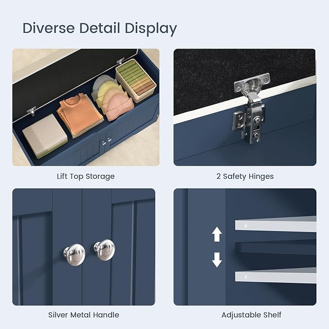 usikey Shoe Bench with Lift Top Storage, Storage Bench with Padded Seat Cushion, Entryway Bench with 2 Adjustable Shelves, for Entryway, Living Room, Bedroom, Blue