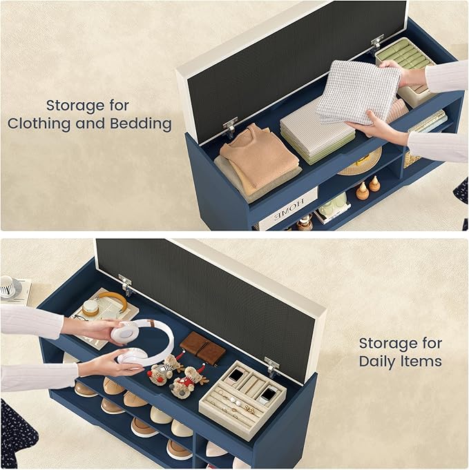 - 【More Than Just an Entryway Bench】Its stylish, classic design works anywhere! Use it by the door for wiping muddy boots, in the living room for extra seating and throw blanket storage, in a bedroom at the foot of the bed.