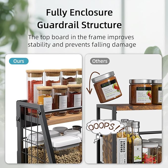 - 【2-Tier Design】Refrigerator organizers feature upper layer for spice jars & condiments, lower layer for fruits, vegetables, potatoes, and onions. The fridge organizer keep essentials organized within easy reach