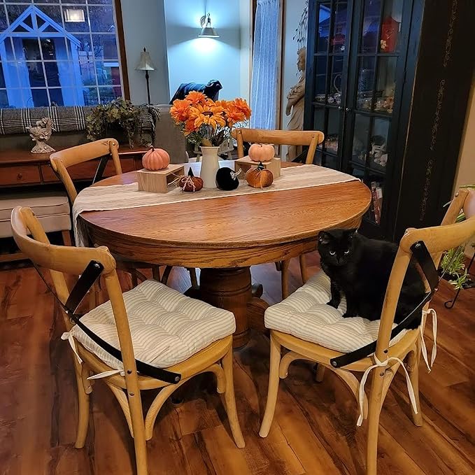 Barnett Home Decor Dining Chair Cushions with Ties, 16.5 x 18, Pack of 4 – Ticking Stripe Natural – 100% Cotton, Latex Foam Fill, Made in USA