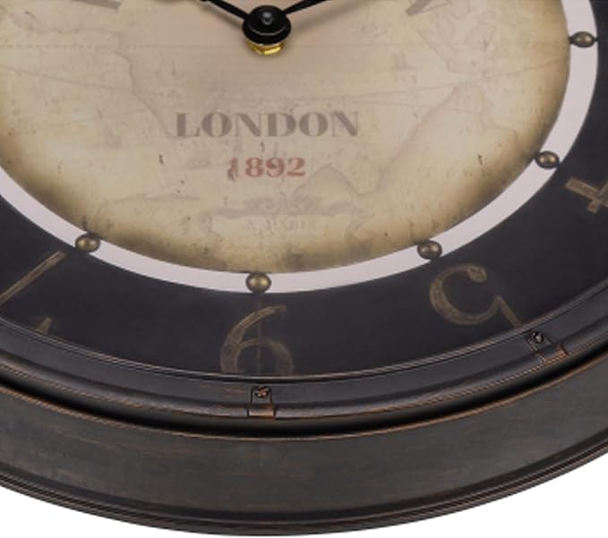 - 15.75" Elegant Vintage Design: A trendy classic round wall clock in antique brown with a vintage vibe for an elegant retro style to your home decor