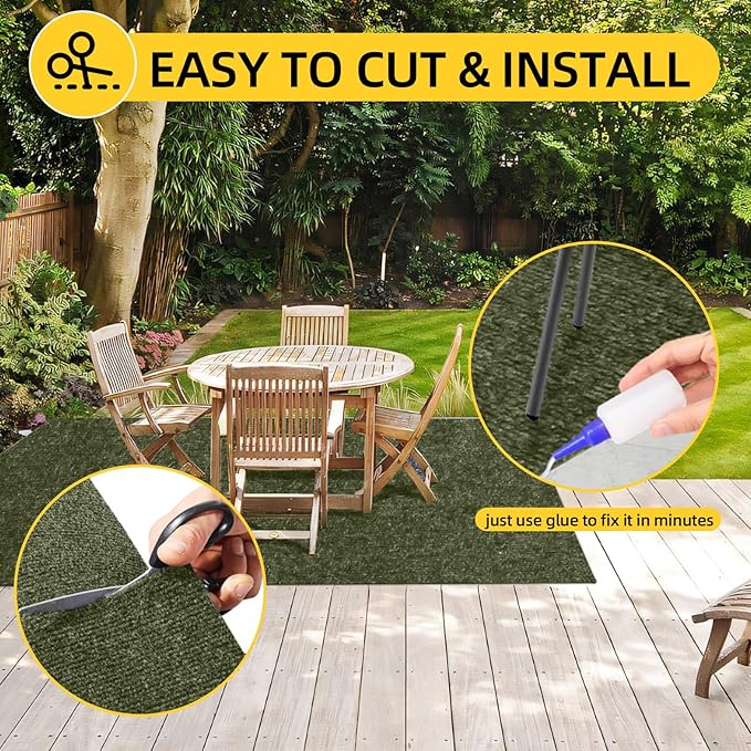 - Premium Indoor Outdoor Carpet: Color: Olive Green; Size: 5 x 20 FT (1.48 x 6.3 m); Thickness: 0.2 in(5.0 mm). Crafted from high-quality polyester fibers, our boat carpet boasts exceptional moisture resistance, durability, shape retention, and colorfastness, ensuring a long-lasting and vibrant addition to your space.