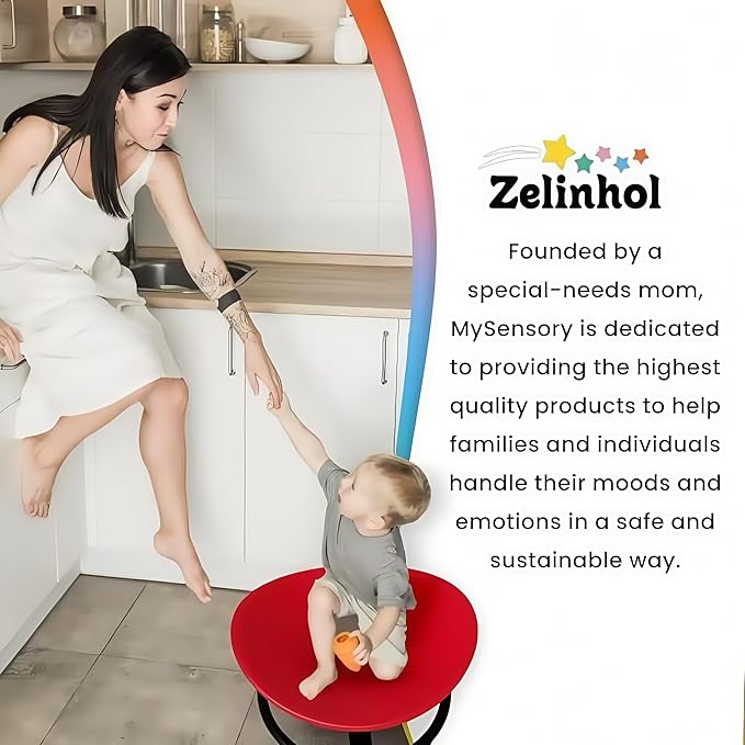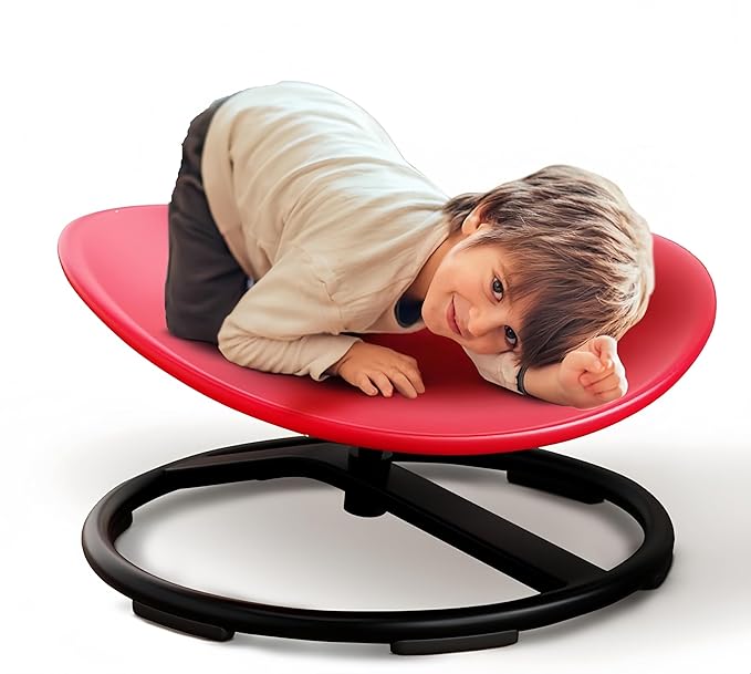 Sensory Spinning Chair for Kids with Autism - Round-Shaped Sensory Seat for Autism & ADHD, Promotes Balance, Focus & Core Strength - Sturdy Sit & Whirl Spinner for Home, School & Therapy Play (Red)