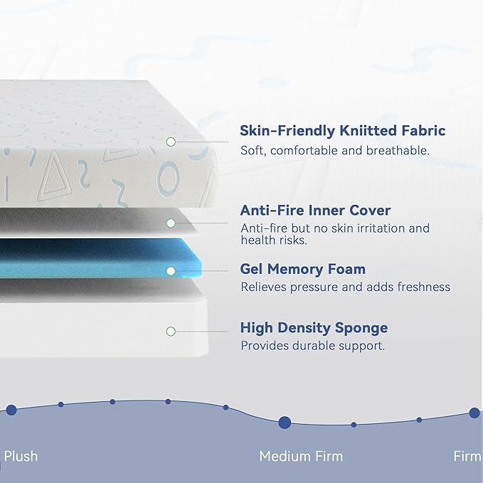 Twin Mattress 6 Inch for Kids, Gel Memory Foam Mattress for Cool Sleep, Medium Firm for Pressure Relief, Fiberglass-Free, Removable Washable Cover, Mattresses in a Box