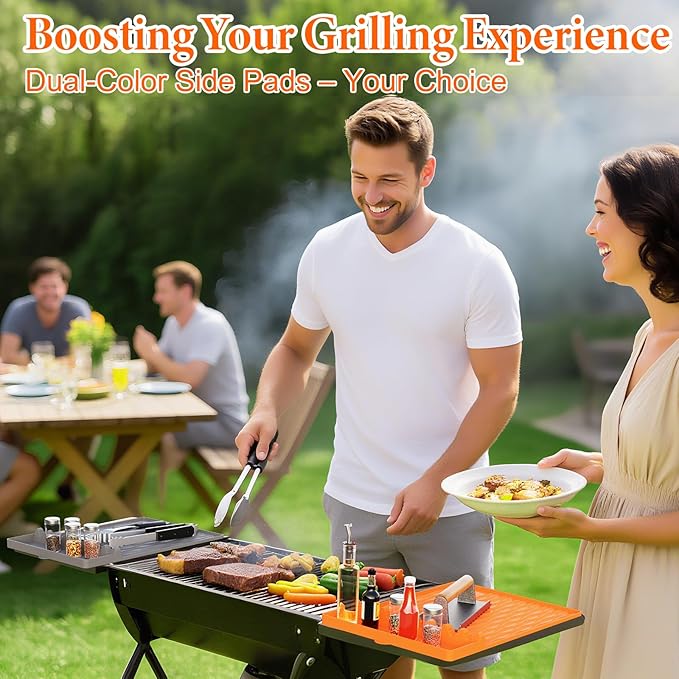 2-Pack Silicone Griddle Mat for Blackstone – Heat-Resistant Utensil Holder with Drip Tray, Non-Slip BBQ Tool Organizer for Grill, Kitchen Countertop & Outdoor Cooking Accessories(Grey&Orange)