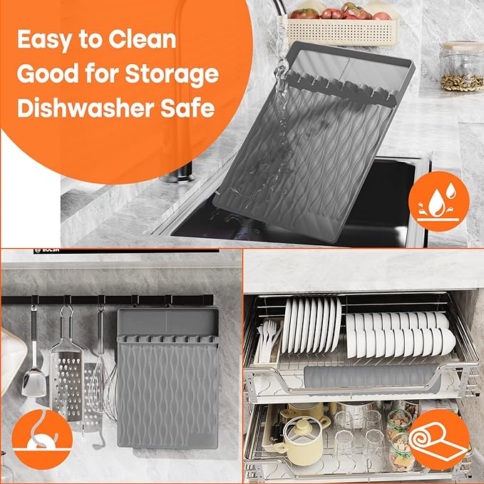 - Heat Resistant and Effortlessly Clean: Engineered to withstand high temperatures, our Silicone Side Shelf Tool Mat can be placed near the stove or countertop without any heat-related worries. Cleaning is a breeze—simply wipe it down, or pop it in the dishwasher for easy maintenance. Keep your kitchen stove, cooking areas, and countertops spotless with our Silicone Spatula Mat.