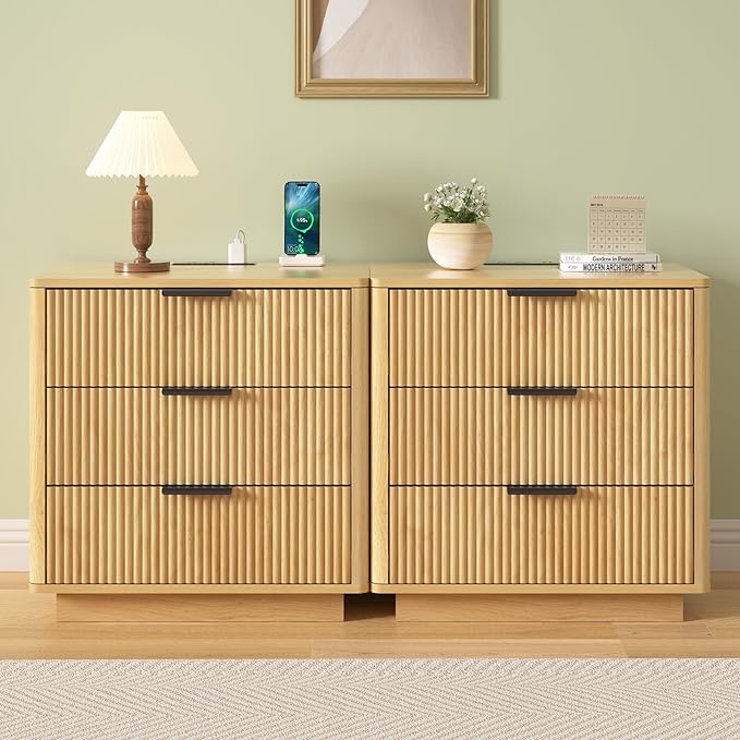 - 【Convenient Charging Station】Our fluted nightstand featuring a built-in charging station. Equipped with 2 USB ports and 2 AC power outlets, it ensures your devices are always charged and ready to go. The back panel includes a cable management hole, keeping your space neat and organized. This smart design not only saves time but also enhances the tidiness and comfort of the bedroom. It's the perfect companion for modern living.