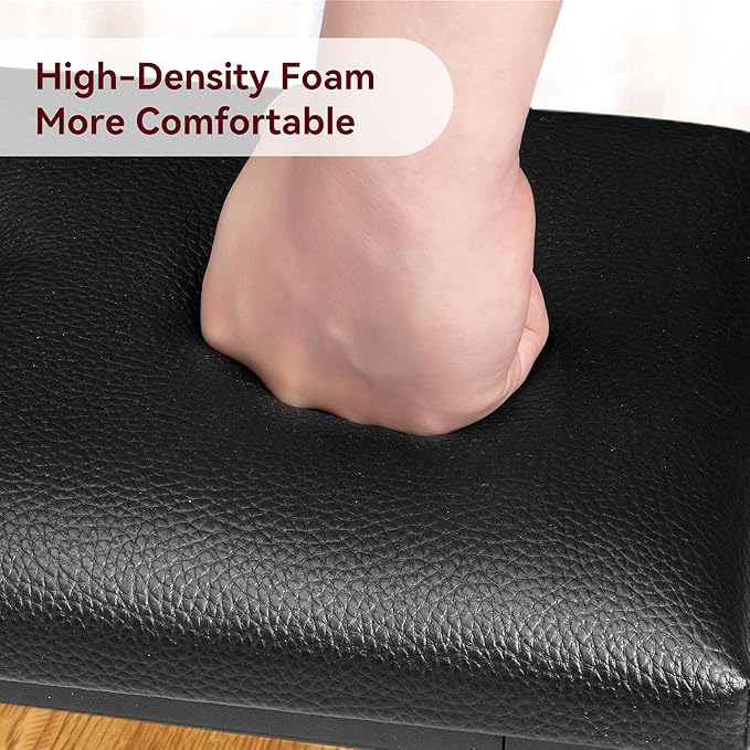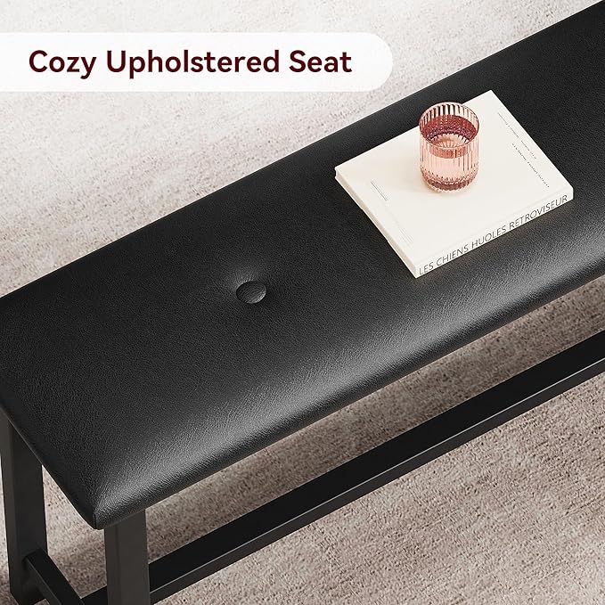 - Cozy & Comfortable Upholstered Benches:Crafted with premium MDF board and reinforced steel, our dining benches feature a thick 1.37-inch high-resilience foam cushion and button-tufted PU leather surface that delivers plush comfort for long sitting periods. Whether you're enjoying a casual meal or hosting dinner with friends, these benches are much more inviting and supportive than traditional wooden seats.